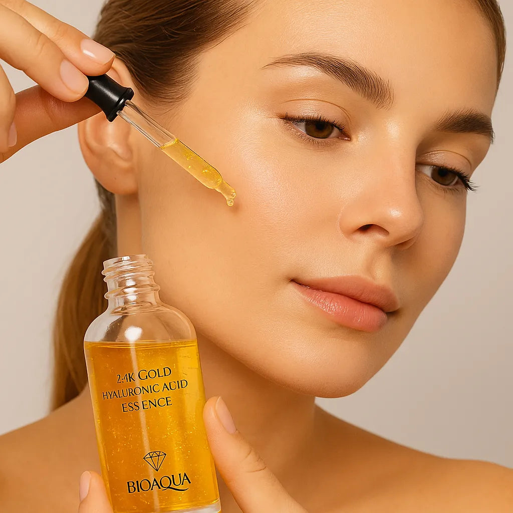 Maravilloso Sérum ácido hialurónico pure gold 24k Bioaqua, La combinación del ácido hialurónico y oro 24K en productos de cuidado de la piel es apreciada por sus beneficios potenciales.