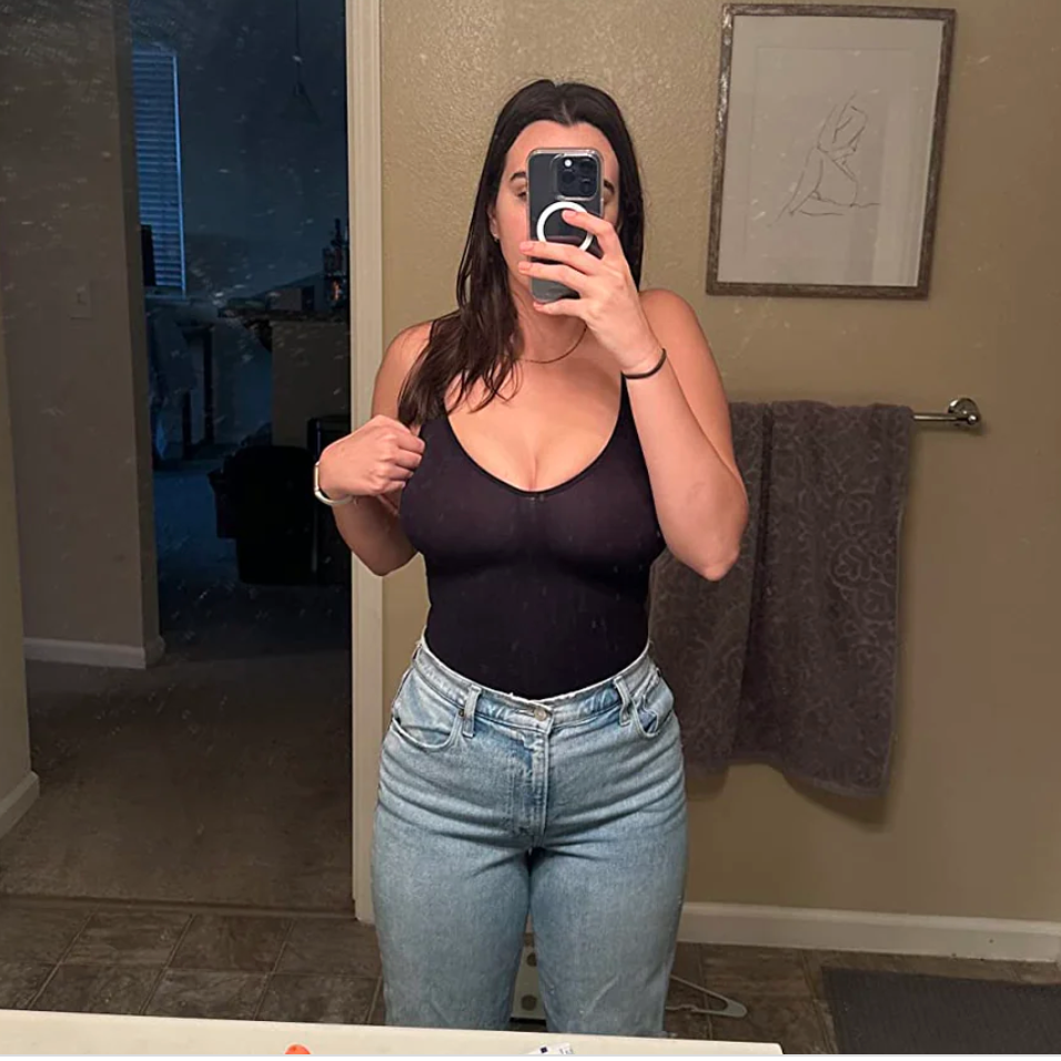 Decidí elegir dos tallas menos de mi talla normal, que es una mediana, y estaba asustada de que me quedara demasiado pequeño, ¡pero me alegra haberlo hecho! Me siento muy cómoda en él y me da ese cuerpo esculpido que adoro.