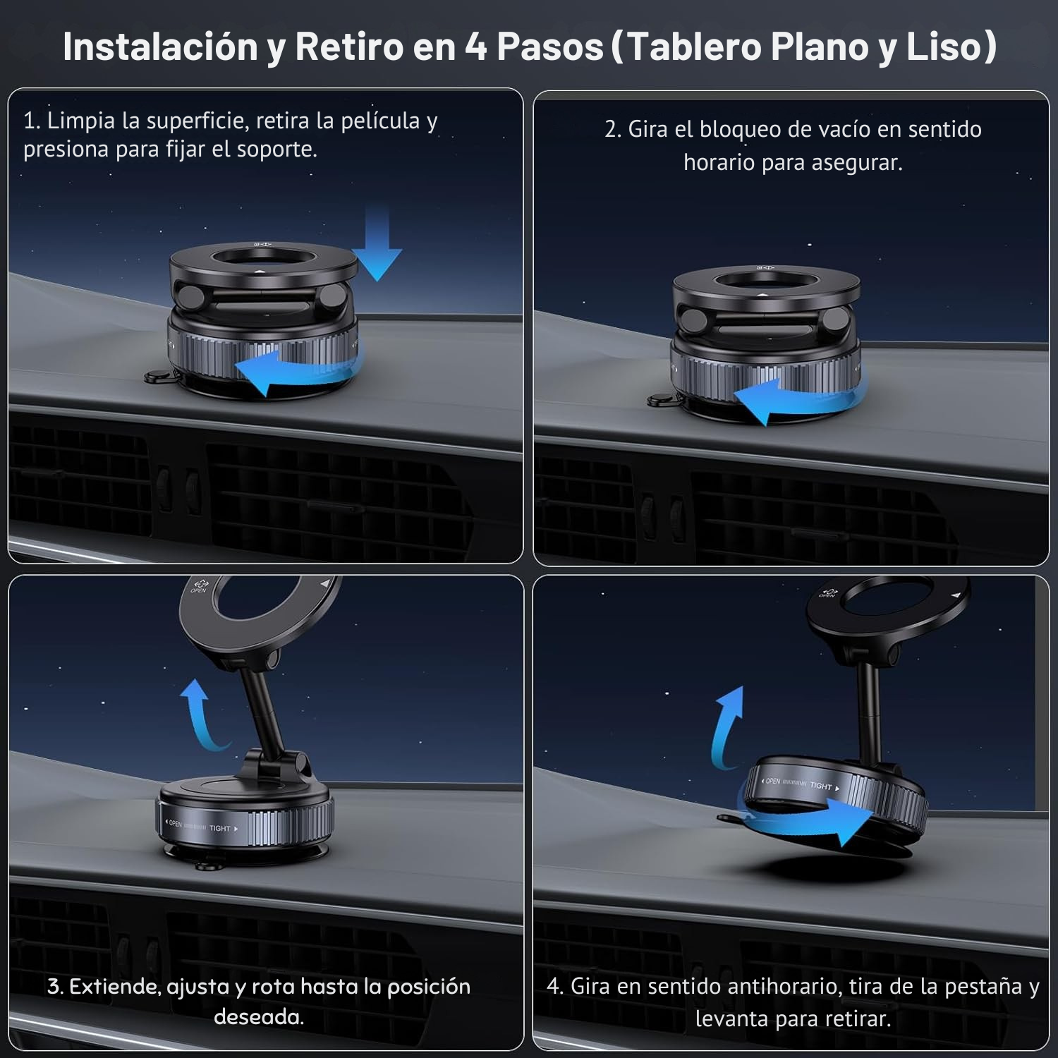 Olvídate de caídas inesperadas y movimientos molestos: el imán de alta potencia y la ventosa profesional trabajan juntos para darte la máxima seguridad.